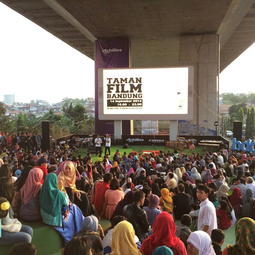 The location of this Film Park is unique, under the Pasupati Flyover. Concepting as an open-air cinema, this Film Park was created with the aim of adding Bandung City tourist attractions to local residents to gather to watch movies and chat with each other.