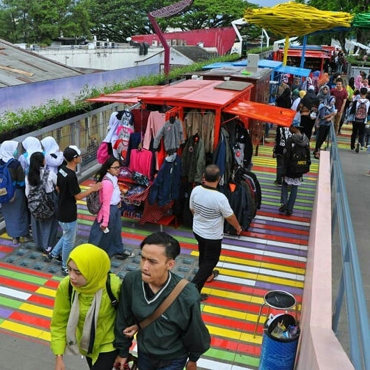 a skywalk on  Cihampelas shopping destination which was officially opened in Bandung, West Java at 4th february 2017. The 450meter Teras Cihampelas (Cihampelas Terrace) has become a new tourist attraction, as well as to manage the large number of street vendors in the area.